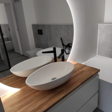 Ihr Weg zum Traumbad mit Karmi Bau Wir koordinieren alle notwendigen Schritte für Sie. Von der Demontage des alten Bades bis zur finalen Silikonfuge arbeiten wir präzise und termingerecht. * Komplettsanierung: Abriss, Entsorgung und Neuaufbau. * Trockenbau & Vorwandinstallationen: Für eine moderne und unsichtbare Rohrführung. * Fachgerechte Fliesenverlegung: Großformatfliesen, Mosaik oder Naturstein – perfekt verlegt. * Malerarbeiten im Bad: Spezielle, feuchtraumgeeignete Anstriche.